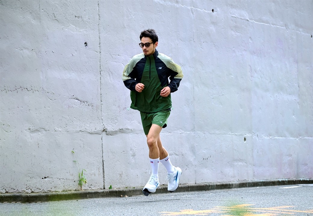 ジャケットはNew Balance独自のWater defy機能を搭載し、軽量ながらクリンクル仕上げでヴィンテージ感がプラスされ、ウェアとしてハイレベルな仕上がりに。背面にはベンチレーションも搭載しています。撥水加工もされているので、ちょっとした雨の日のランや、突然の雨に対応できるのも嬉しいところ。今季一推しの5インチショーツは、とにかく穿いていて楽なのがポイント。4WAYストレッチと3Dパターンのインナーブリーフの組み合わせで動きを妨げず、長距離ランでもストレスがありません。ポケットも豊富に備え、リフレクトロゴを備えているのも嬉しいところ。自信をもっておすすめできるショーツです。
