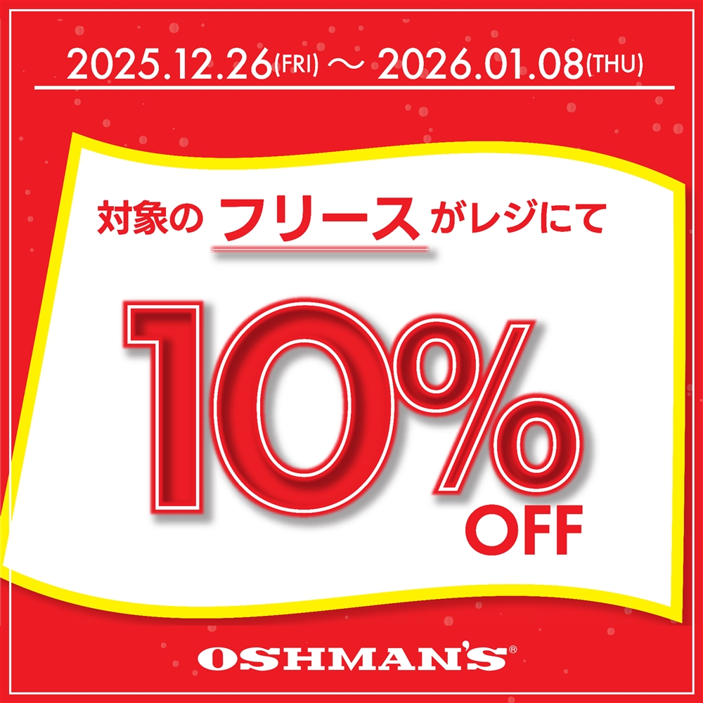 12月26日(金)より、オッシュマンズ全店舗にて、対象の「FLEECE(フリース)」がレジにて "10%OFF" となる『FLEECE FAIR(フリースフェア)』を開催いたします!