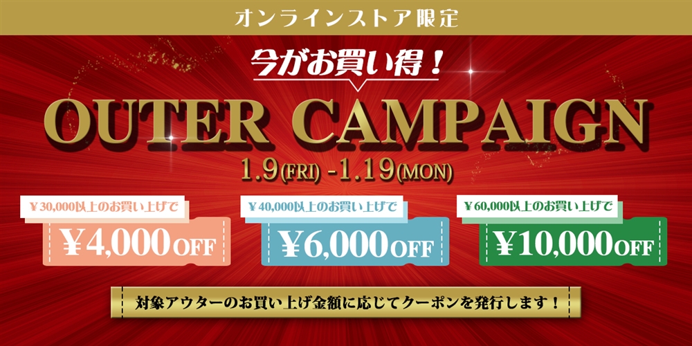 【LINEお友だち・ONLINE STORE会員限定】OUTER CAMPAIGN|アウターキャンペーン(全店舗)