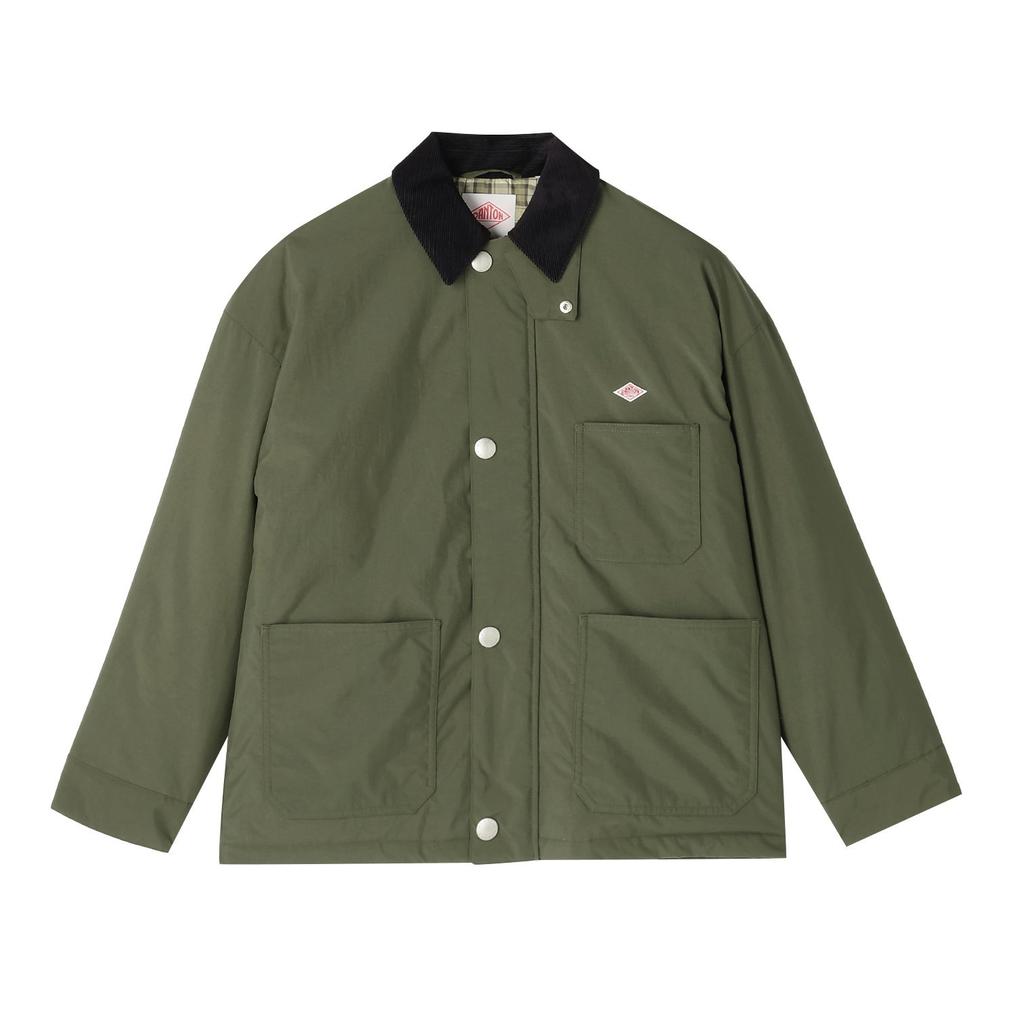 自然な光沢があるやわらかな風合いのナイロンタフタを使用。裏面にアクリルコーティングを施して軽度な撥水性をプラスしています。裏地には表地のカラーごとに異なるチェック柄の生地を使用しています。ドットボタンやファスナー引き手など、随所にオリジナルパーツを採用。フロントはボタン付きフラップが配されたファスナー仕様です。薄手の中綿が内蔵され秋冬アウターに最適です。