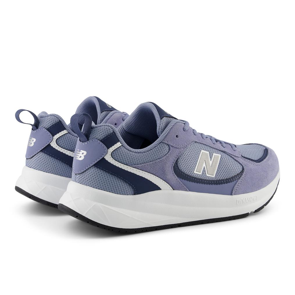 トレンドのスモールNロゴとレイヤードデザインのスエード/メッシュアッパーに、歩行時の力に合わせた内外非対称のアッパー&ソールを設計。