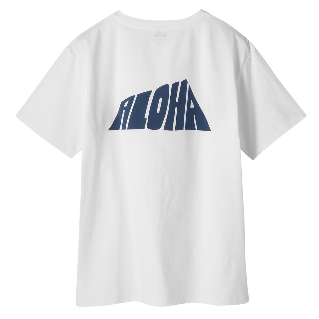 様々なフォントを組み合わせ、ポップな印象に仕上げたMIXロゴの刺繍が左胸に入り、背中にはダイアモンドロゴの中にALOHA文字をレイアウトしたデザインです。