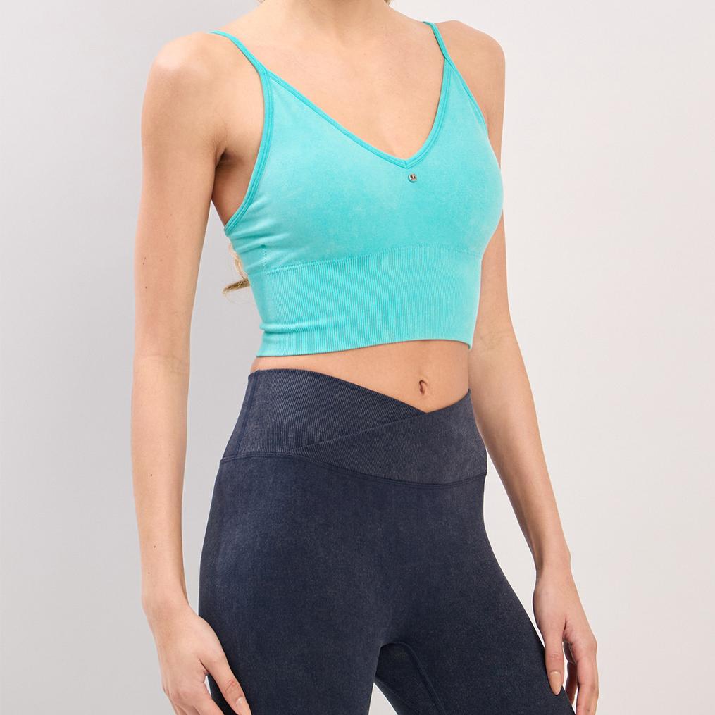 無縫製のシームレス技術を採用した、快適な着心地のシグネチャーウェアです。 肩や胸への締め付けを抑え、長時間の着用でも快適なフィット感を実現しました。 肩紐は長さ調整が可能で、内蔵されたブラカップには幅の広いカップを使用することで谷間が協調されず自然なボリューム感を演出します。[\n]そのためハードな運動でも気にせず動くことができます。