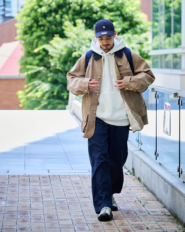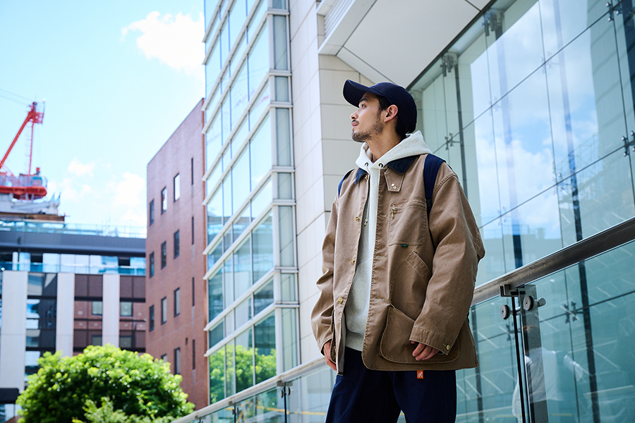 アメリカ発のワークウェアスタイルを現代に落とし込んだワークジャケット。丈夫で摩耗に強い11オンスのダック生地を使用し、無骨ながらも軽量。幅広シルエットでレイヤリングしやすく、ライニングには防風性の高いラミネート加工を採用。アウトドアやタウンユースでも安心の保温性と耐久性を持ち、アメカジ好きに定番の一枚です。
