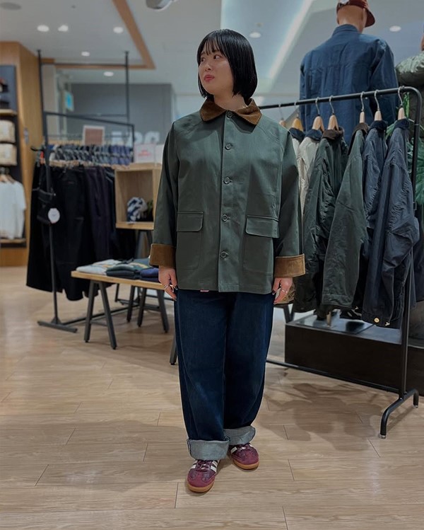 女性らしいシルエットで仕上げた別注カバーオール。シンプルで大人っぽいデザインながら、コストパフォーマンスに優れたアイテム。裾にかけて少し広がるラインや長めの袖丈で、折り返してコーデュロイ生地を覗かせる着こなしも可能。羽織りとしてもインナーとの重ね着としても活躍し、着用期間が長く、日常で重宝するジャケットです。