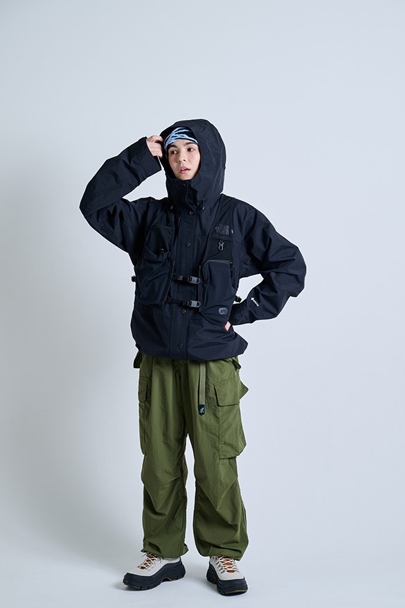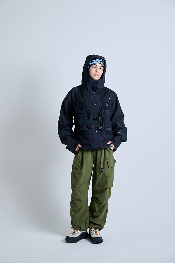 季節の変わり目やアウトドアシーンで活躍するショート丈フレアジャケット。ゆったりした身幅と裾幅でバックパックを背負ったままでも快適。フードや裾のスピンドル、リブのゴム+ベルクロでフィット調整可能。撥水加工とリップストップ素材で小雨やほつれにも強く、軽やかでタフな仕様が日常からアウトドアまで幅広く対応します。