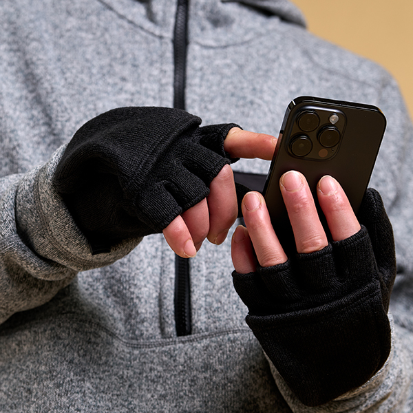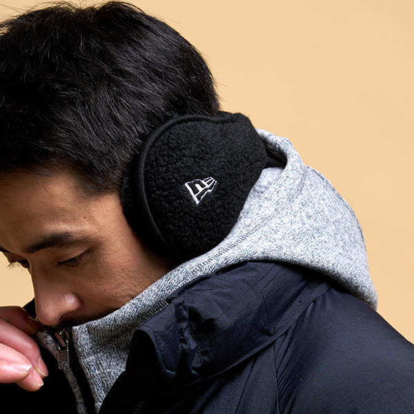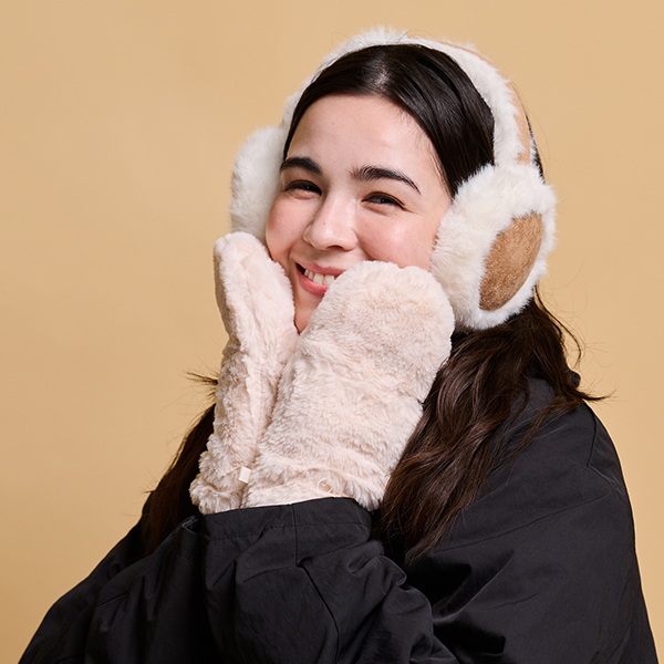 見た目にもあたたかい、ふわふわ素材のイヤーマフと冬グローブ。