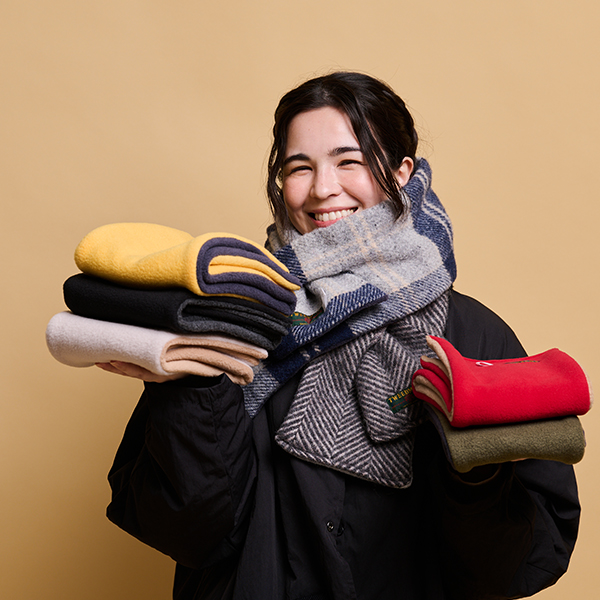 さっと巻くだけで暖かい、やさしい着け心地のマフラー。