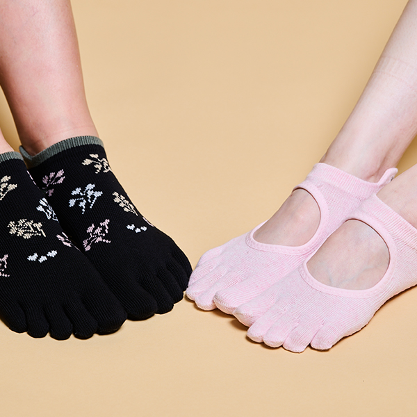 裸足感覚で動ける5本指タイプで、レッスン中の安定感をしっかりサポート。