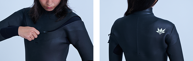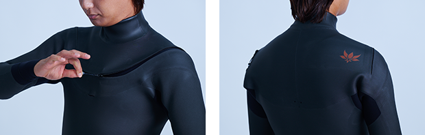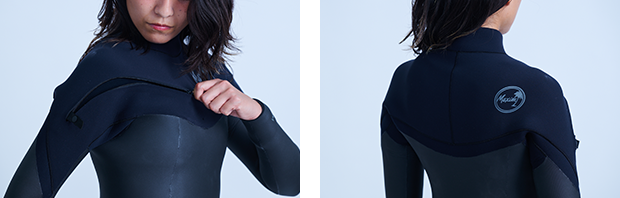 開口部が大きく開くようになり、着脱性がUPした「OJ リミテッド BIRD 5/3mmフルスーツ」。